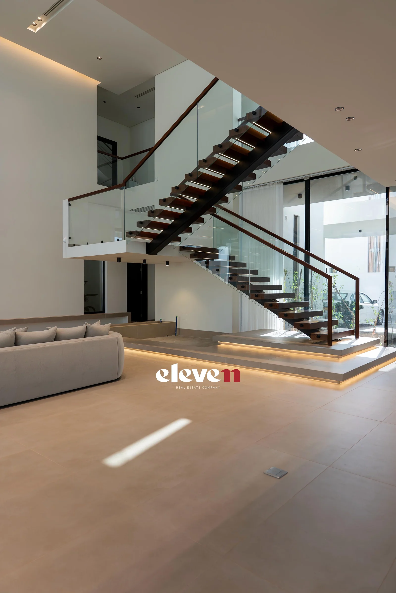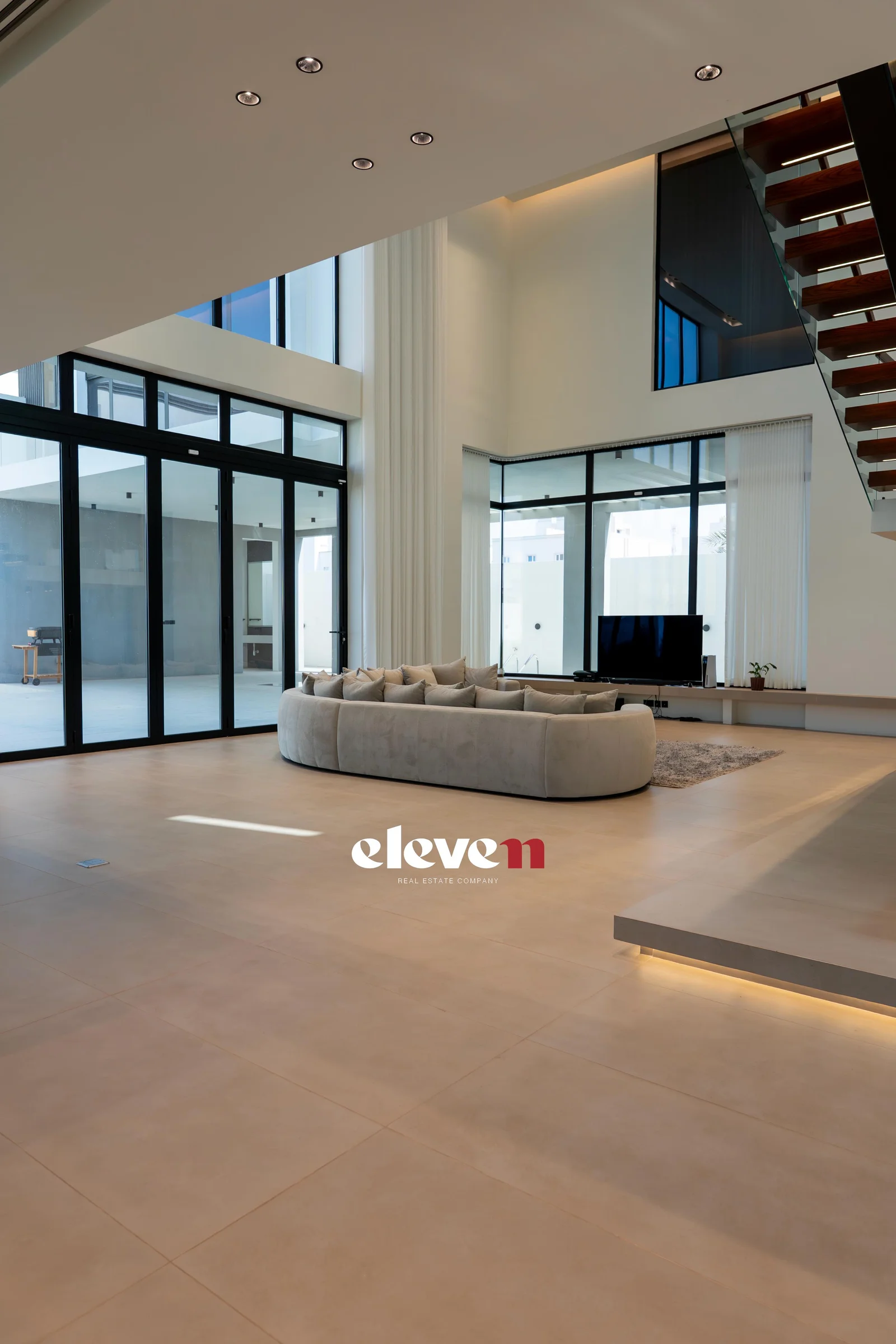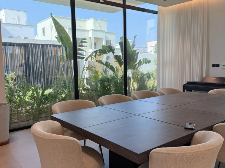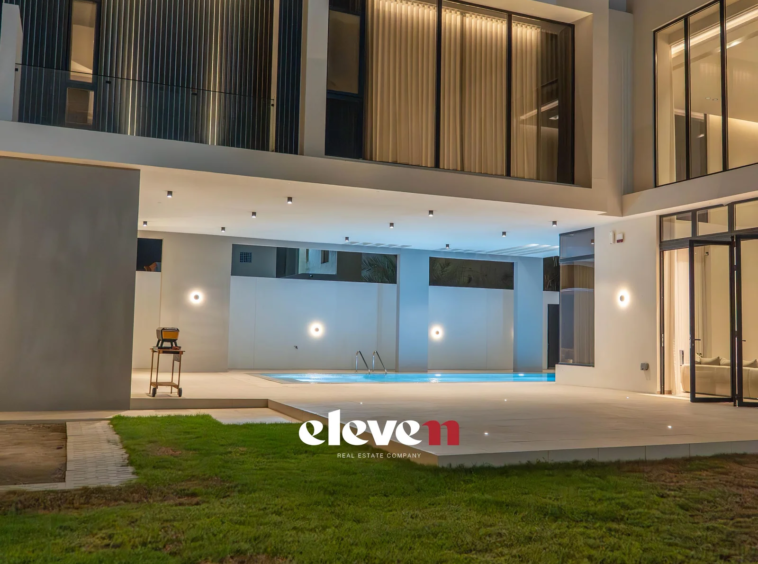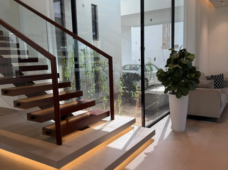This villa is a modern masterpiece that combines luxury, openness, and functional architectural integration. It features a large, prominent facade, a double height, natural light, and a private pool. Designed by Al-Jidar Architects, known for their harmonious designs that combine visual balance with meticulous detailing. The design is based on clean geometric lines, natural materials, and the intelligent connection between indoor and outdoor spaces.