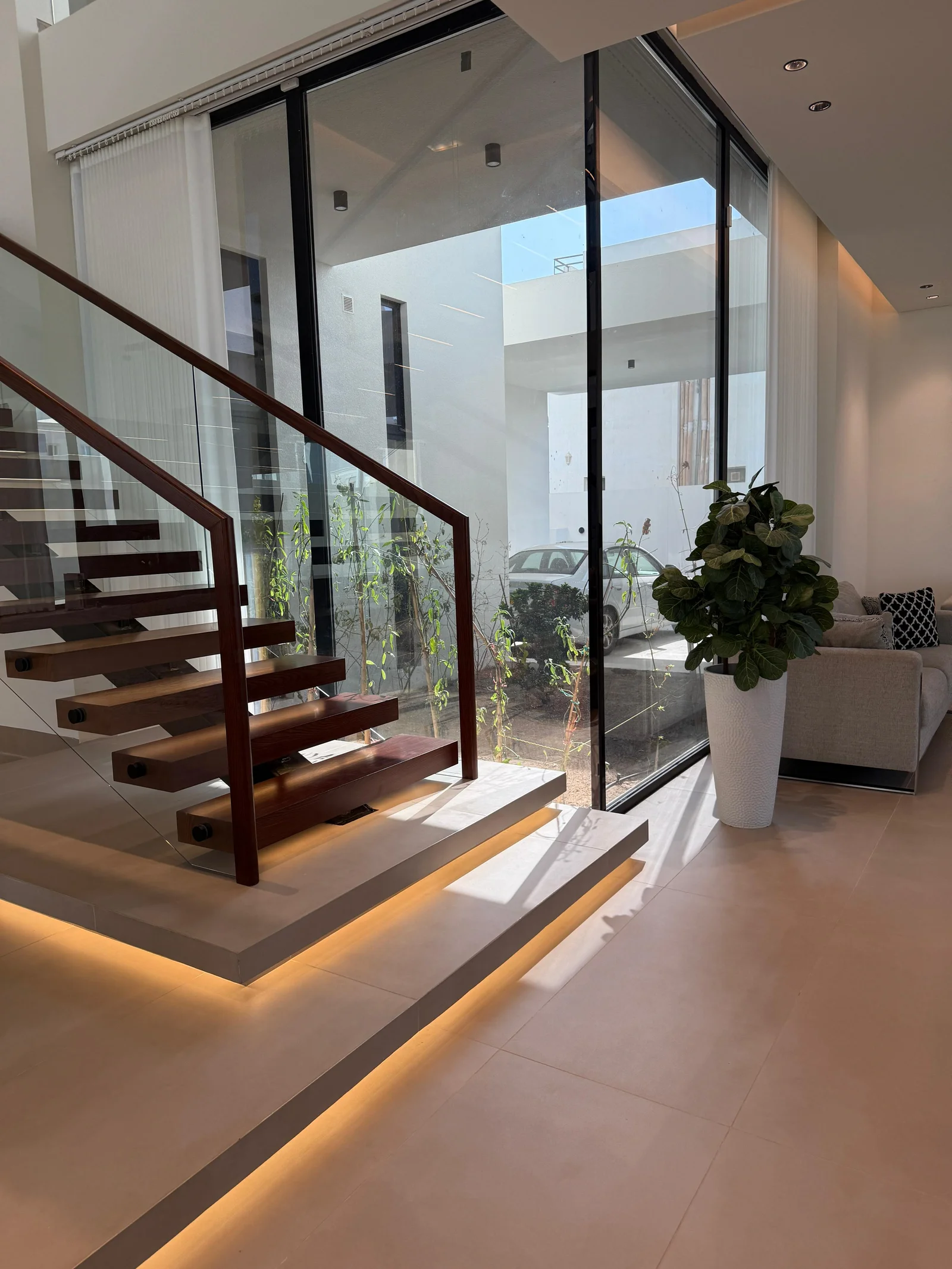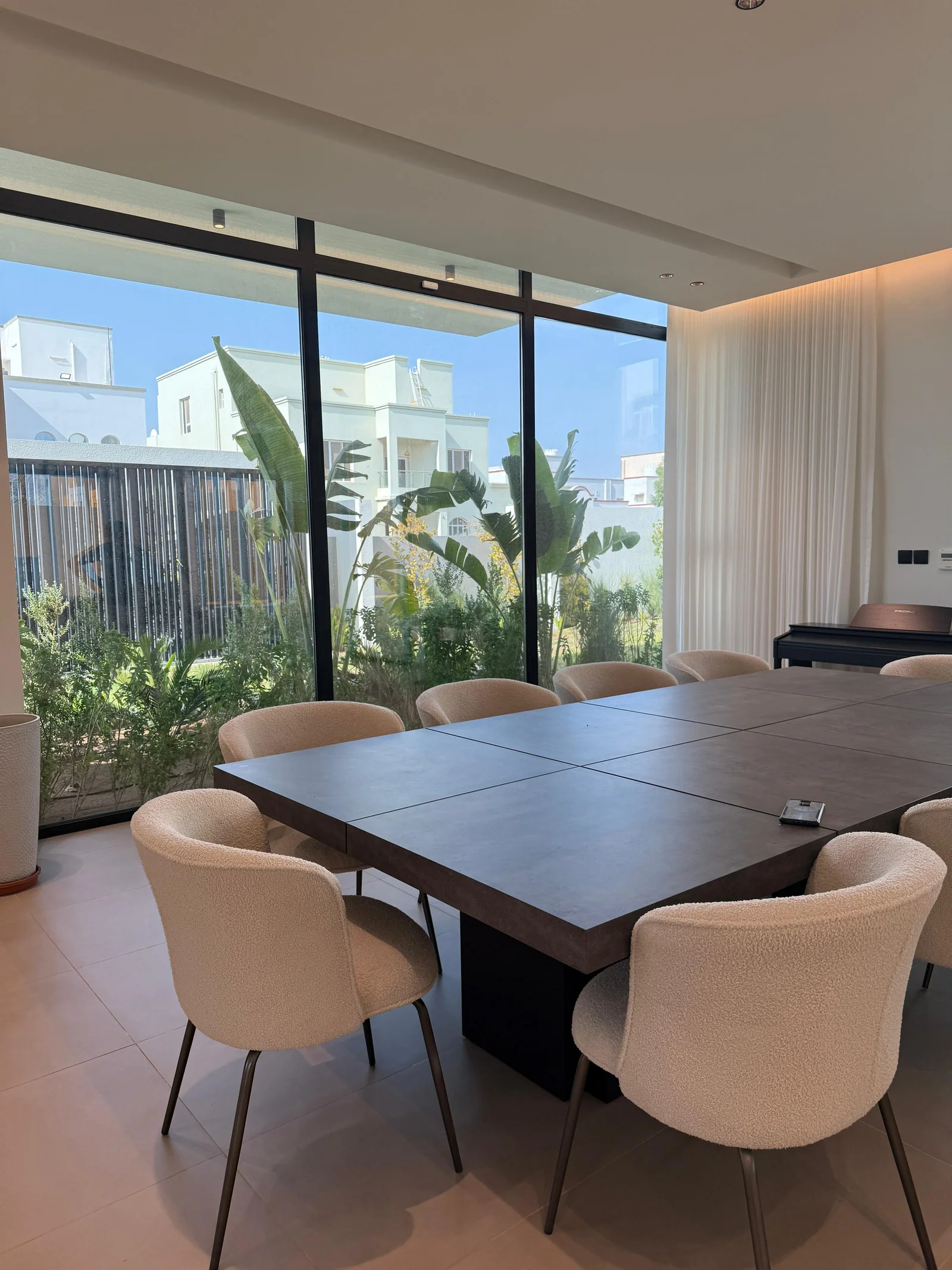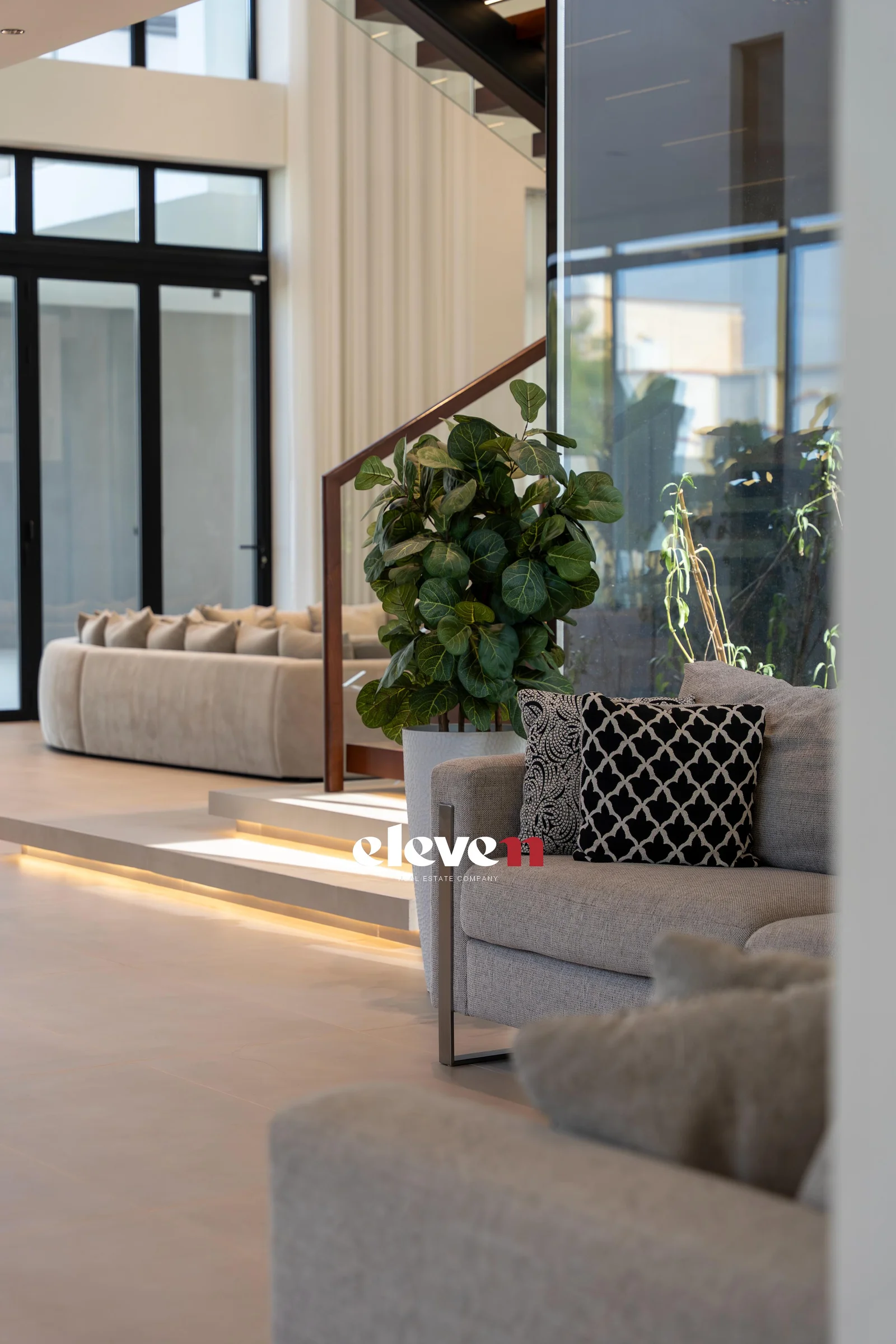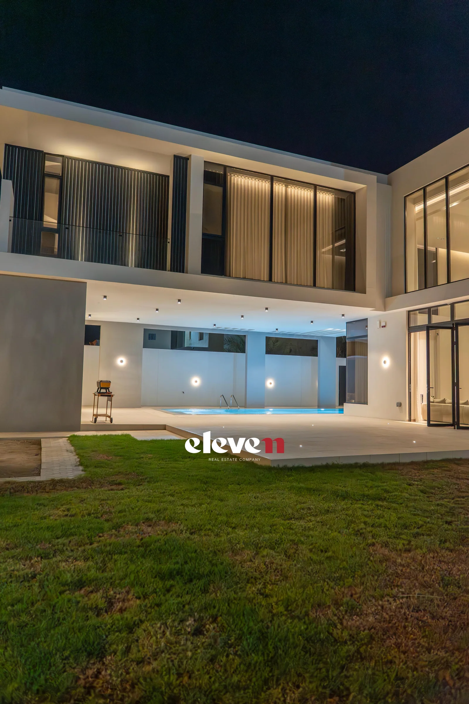 This villa is a modern masterpiece that combines luxury, openness, and functional architectural integration. It features a large, prominent facade, a double height, natural light, and a private pool. Designed by Al-Jidar Architects, known for their harmonious designs that combine visual balance with meticulous detailing. The design is based on clean geometric lines, natural materials, and the intelligent connection between indoor and outdoor spaces.