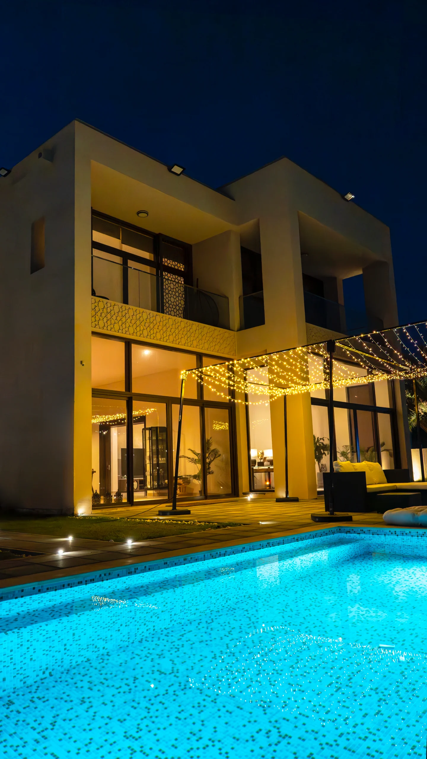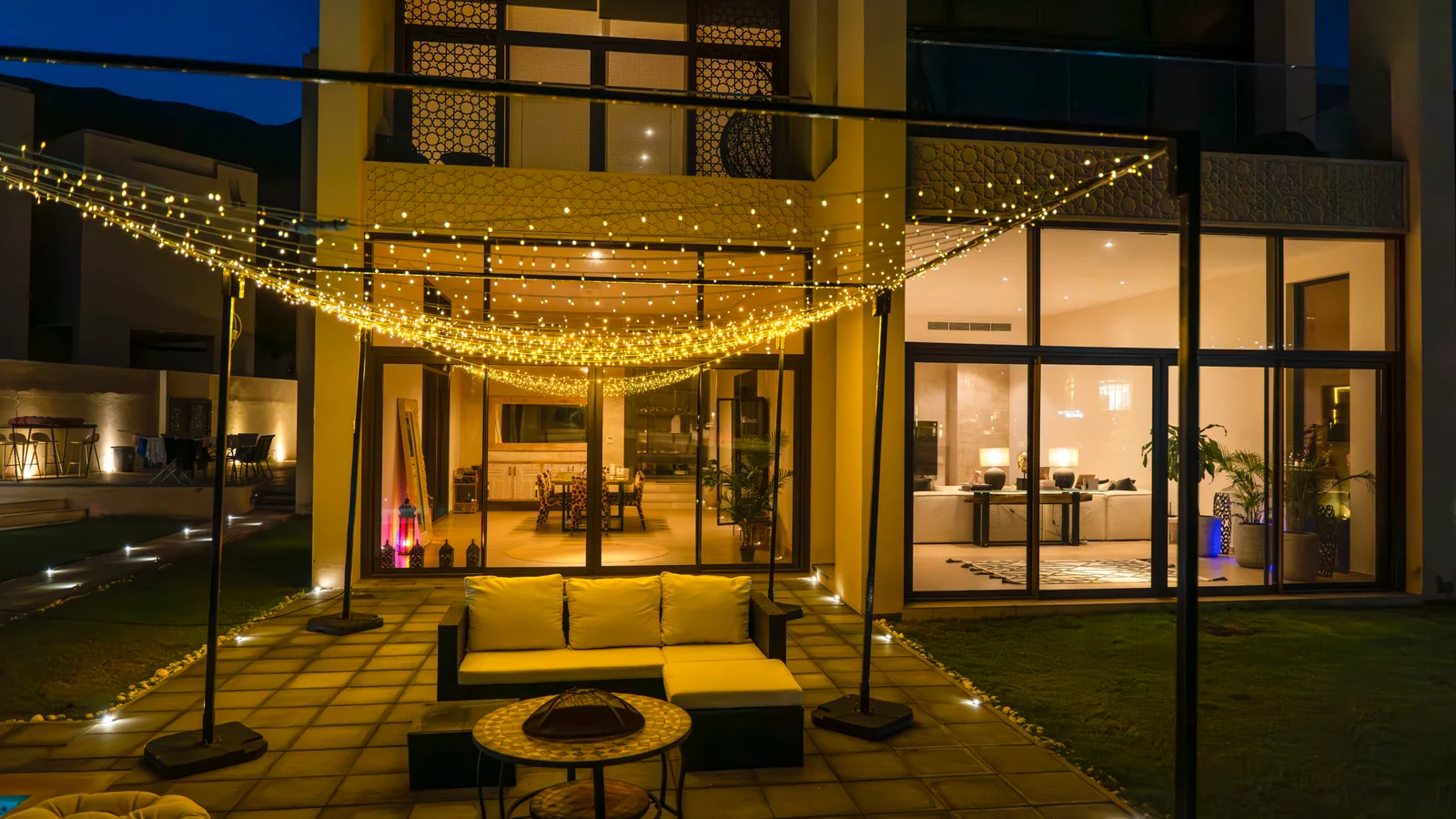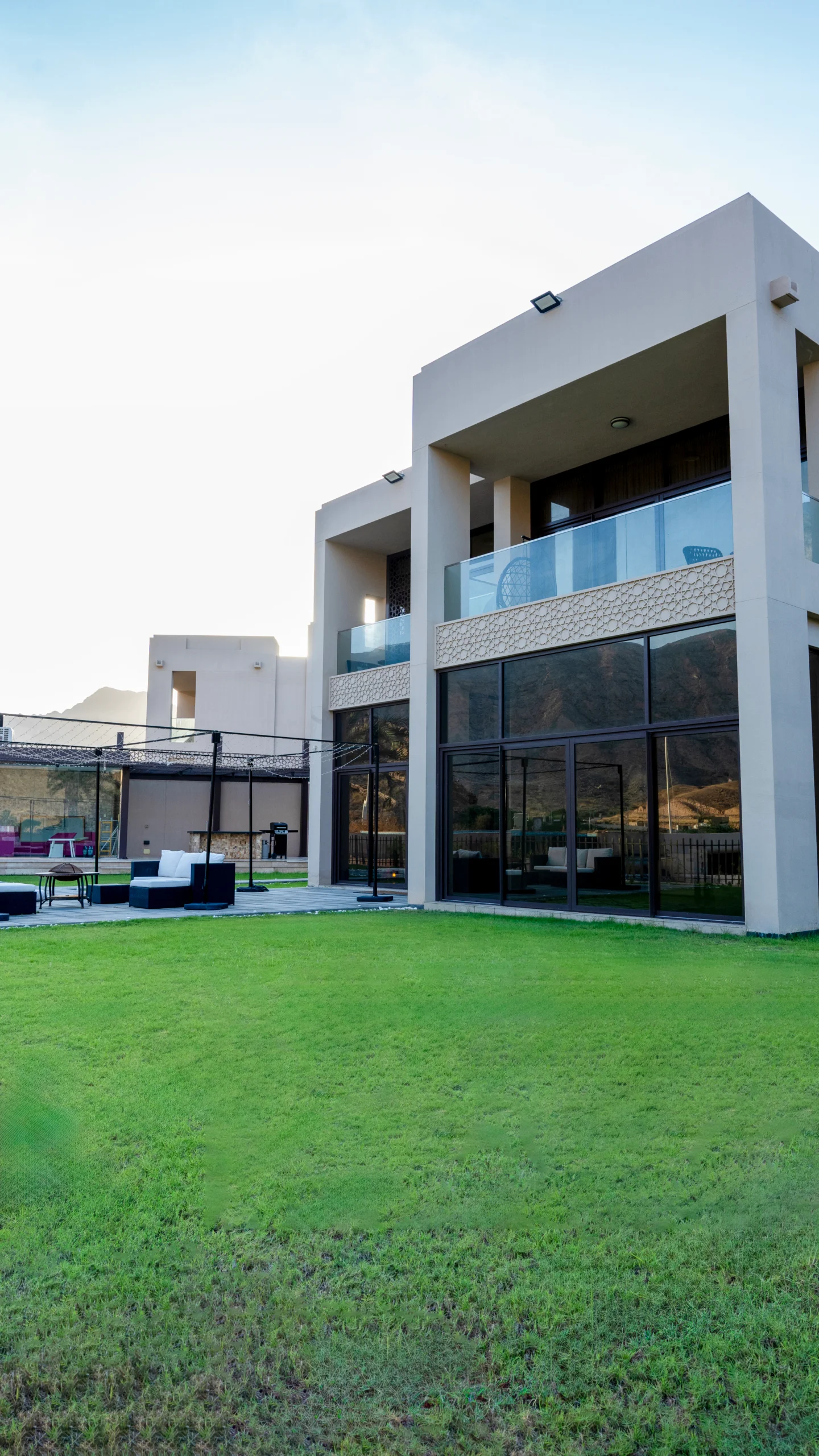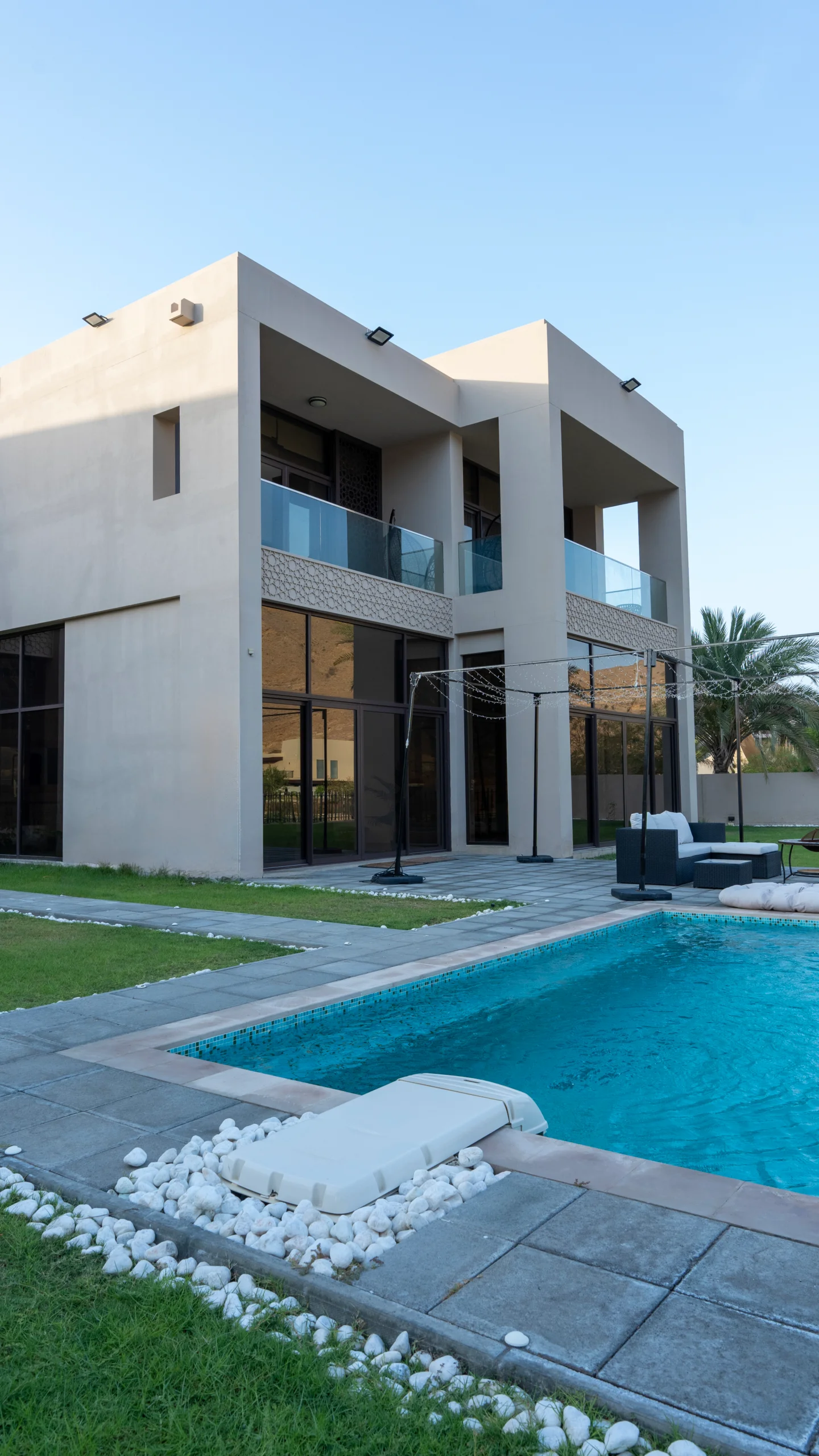 Zaha Villas are located directly on the waterfront or within lush gardens at the heart of the Muscat Bay project, overlooking the lake, pool, and sometimes the sea, along with picturesque mountainous and natural surroundings. The design is consistent with a calm, modern style, with clean lines and local materials, creating a sense of openness, luxury, and privacy.